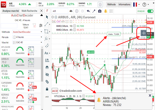 Les assistants visuels affichent sur vos graphiques les signaux d'analyse technique basés sur les méthodes de TD.
